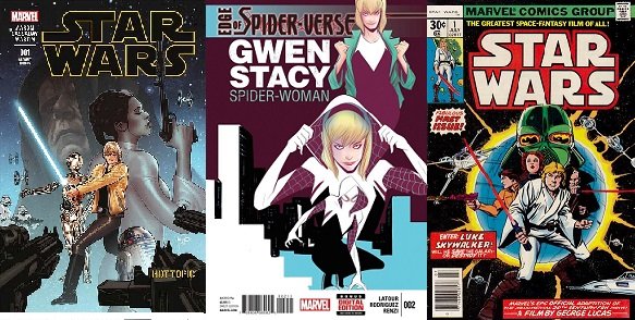#29 STAR WARS #1 ACTION FIGURE VARIANT (MARVEL 2015) Huge buzz created a sellout of 980,000 copies of the return of Star Wars to Marvel in January 2015 – many variants did very well but the action figure variant was so popular it started a series of action figure variants that have all doubled in value quickly.
