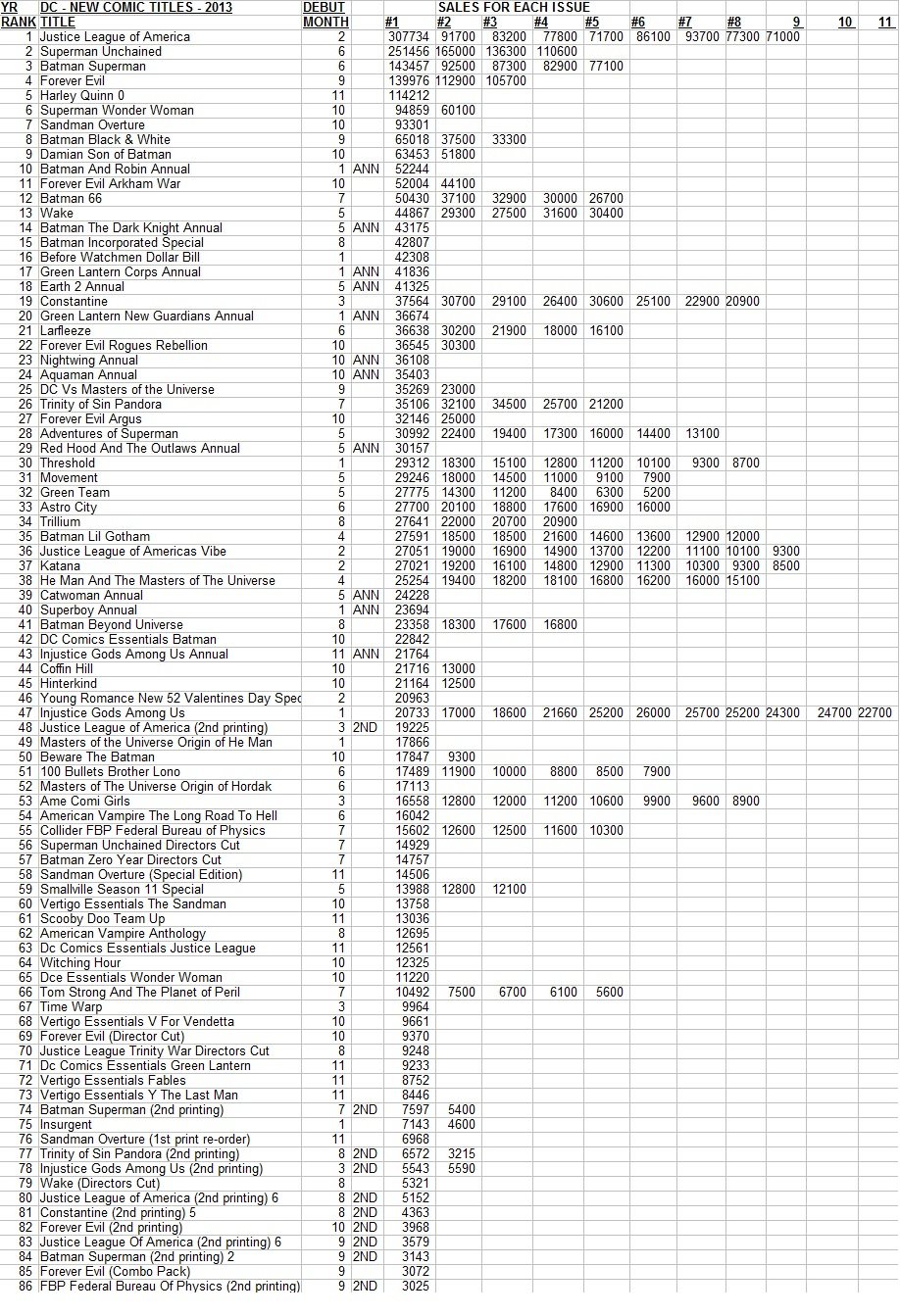 DC Comics Every New Series Of 2013 Number Ones Sales Figures