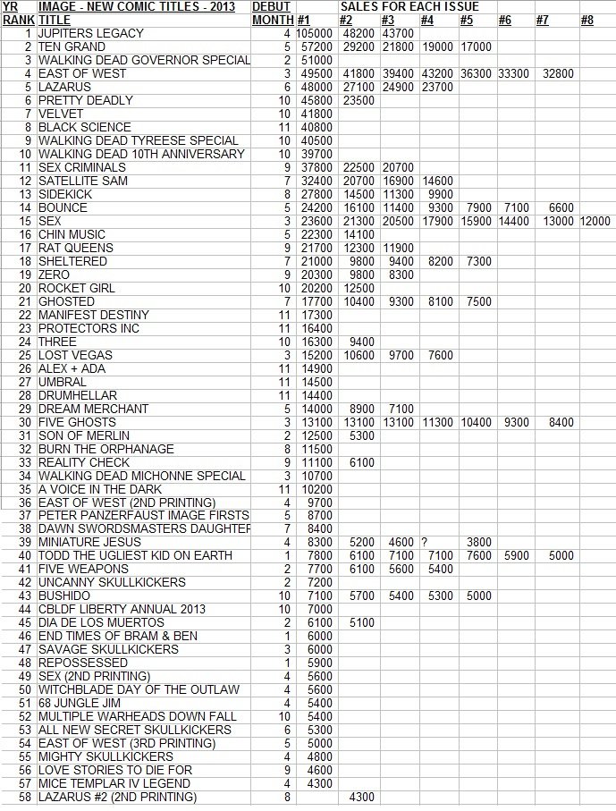 IMAGE Comics Every New Series Of 2013 Number Ones Sales Figures
