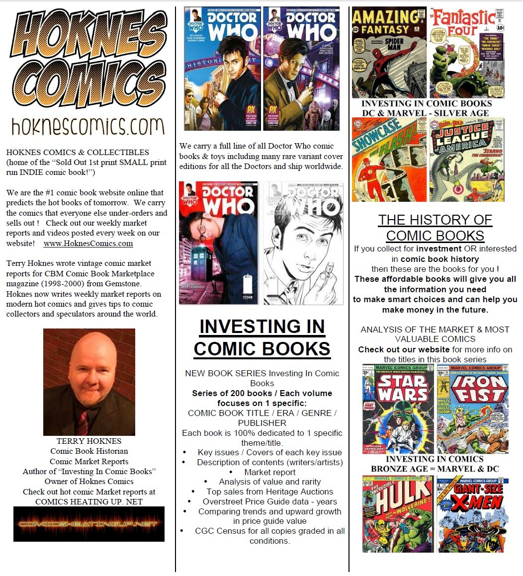 Weekly article by Terry Hoknes, comic book historian, writer of the Investing In Comic Book series (gold,silver,bronze) and also Canada’s leading comic book retailer focusing on hot sold out comic books and small publishers at www.HoknesComics.com