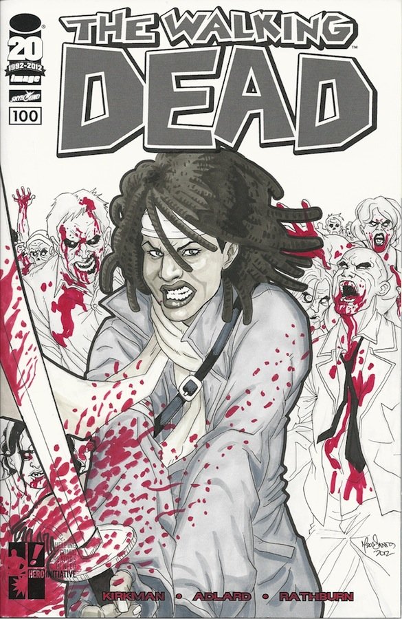 Now, after running projects with Marvel Comics, DC and Archie, Hero Initiative proudly announces that its latest and greatest “100 Project” will feature the best-selling comic of 2012—The Walking Dead #100. This marks the first time Hero has partnered in such a way with Image Comics and Skybound.