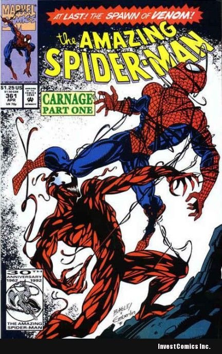 Sticking with the comeback theme, Carnage is back. Carnage U.S.A. #1 (what’s with this title?) presented by writer Zeb Wells and Art by Clayton Crain. Carnage was one of those villains back in the 90’s that became so loved, but so overused. The first appearance went for some big bucks back when the bubble was about to burst. Today however, things have obliviously leveled off a bit. Cletus Kasady a.k.a. Carnage first appeared in Amazing Spider-Man #344 (1991 – $8). Cletus as the villain Carnage came 17 issues later in Amazing Spider-Man #361 (1992). Expect to pay close