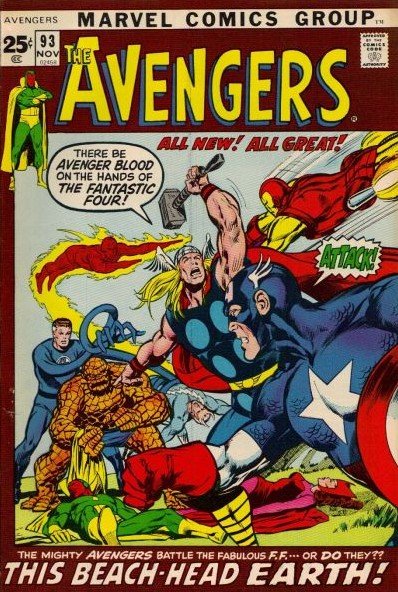 Now back to the Kree-Skrull comic. The first part of this mega awesome story appeared in The Avengers #89 with the awakening of Kree-Sentry. Although the first part from 1971 will cost you only about $60, it’s The Avengers #93 that takes the cake in this storyline. It’s the double sized issue drawn by the legend himself Neal Adams. This prize issue comes in at $250. Out of the entire 9 issue run here, this would be the one to get. There were 3 other legends that join in bringing this epic story that eventually led to the Secret Invasion story arc. Sal Buscema and John Buscema were on hand along with writer Roy Thomas. If you never got around to checking this story out, you should make a point of getting to it. So if the Kree-Skrull war doesn’t come to the silver screen as part of The Avengers movie, too bad for us and too bad for anyone that doesn’t know of this epic tale.