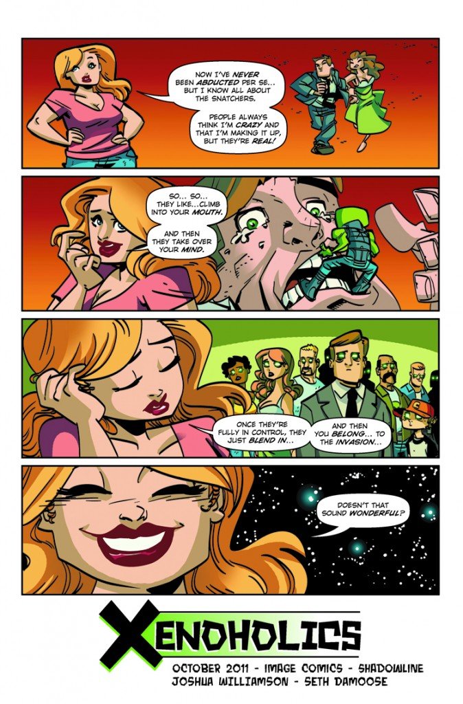 Image sent this teaser for XENOHOLICS, written by Joshua Willaimson and with art by Seth Damoose.